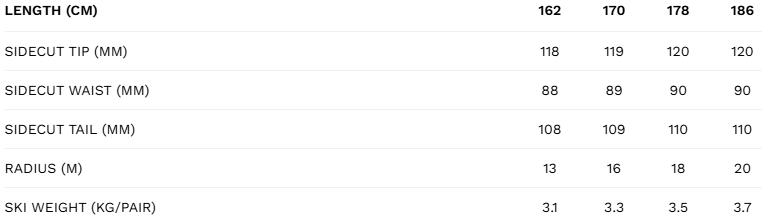 - Ski - Sidecuts dimensions 120-90-110