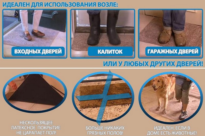 Супер-впитывающий придверный коврик Clean Step Mat, который задерживает пыль, грязь, влагу, не допуская их в ваш дом! Секрет заключается в супер-поглощающих